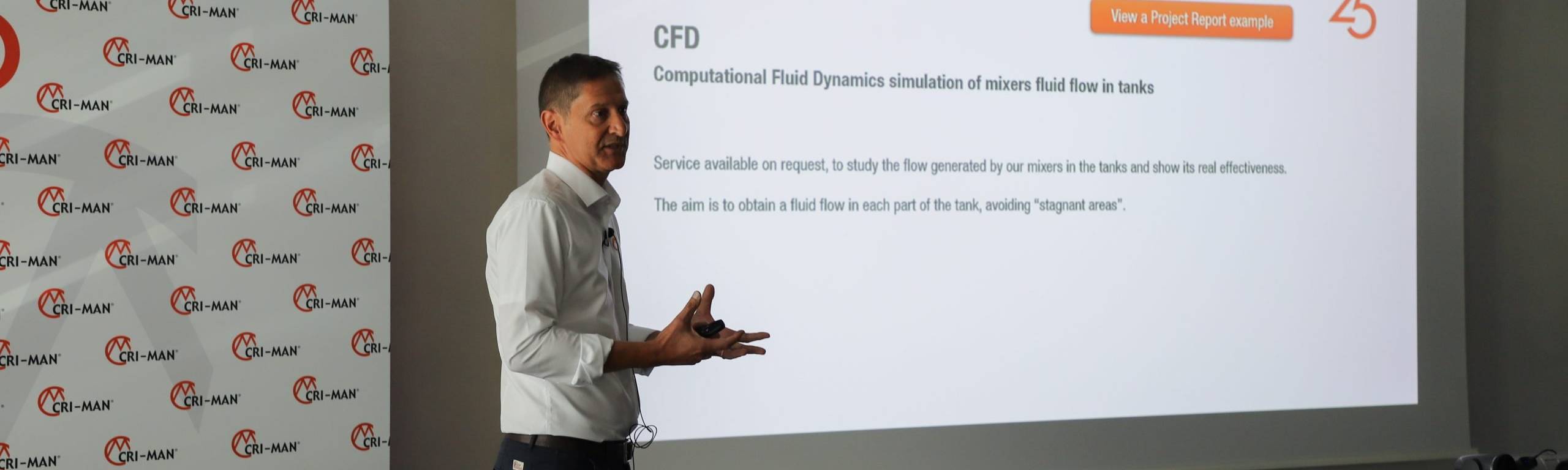 我们展示了正在开发的新产品和项目,如市场需求较高的新机器、SharePoint门户(允许全天候访问文档和营销工具)以及CFD(计算流体力学),这是一项基于实际罐体配置模拟混合器生成流动的服务。