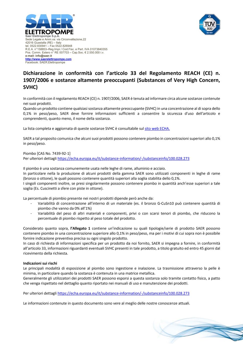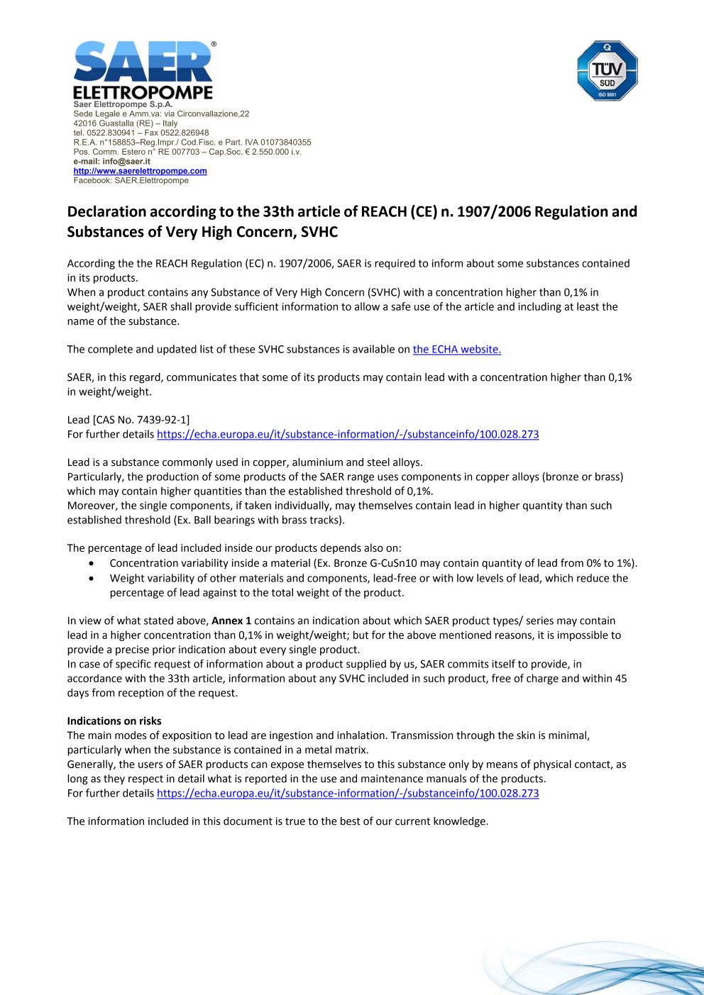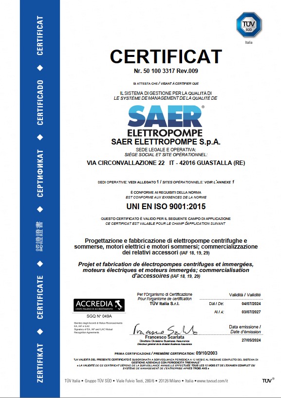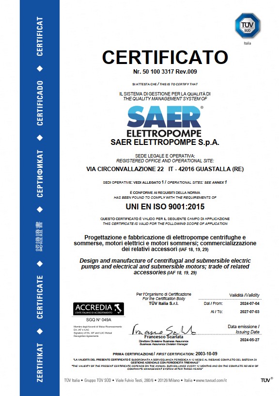 您还可以在此查阅关于 SAER Elettropompe 业务活动的综合资料。