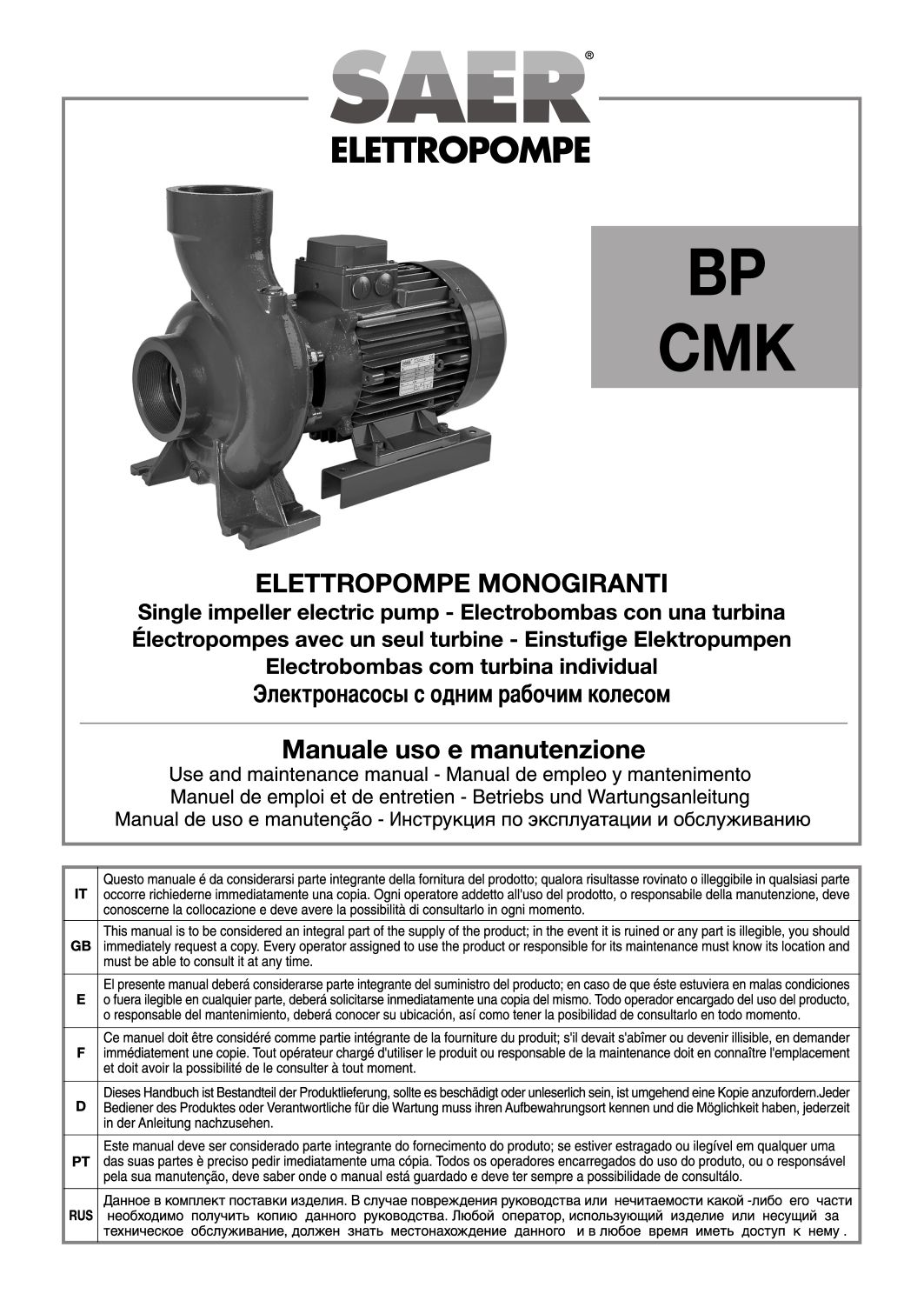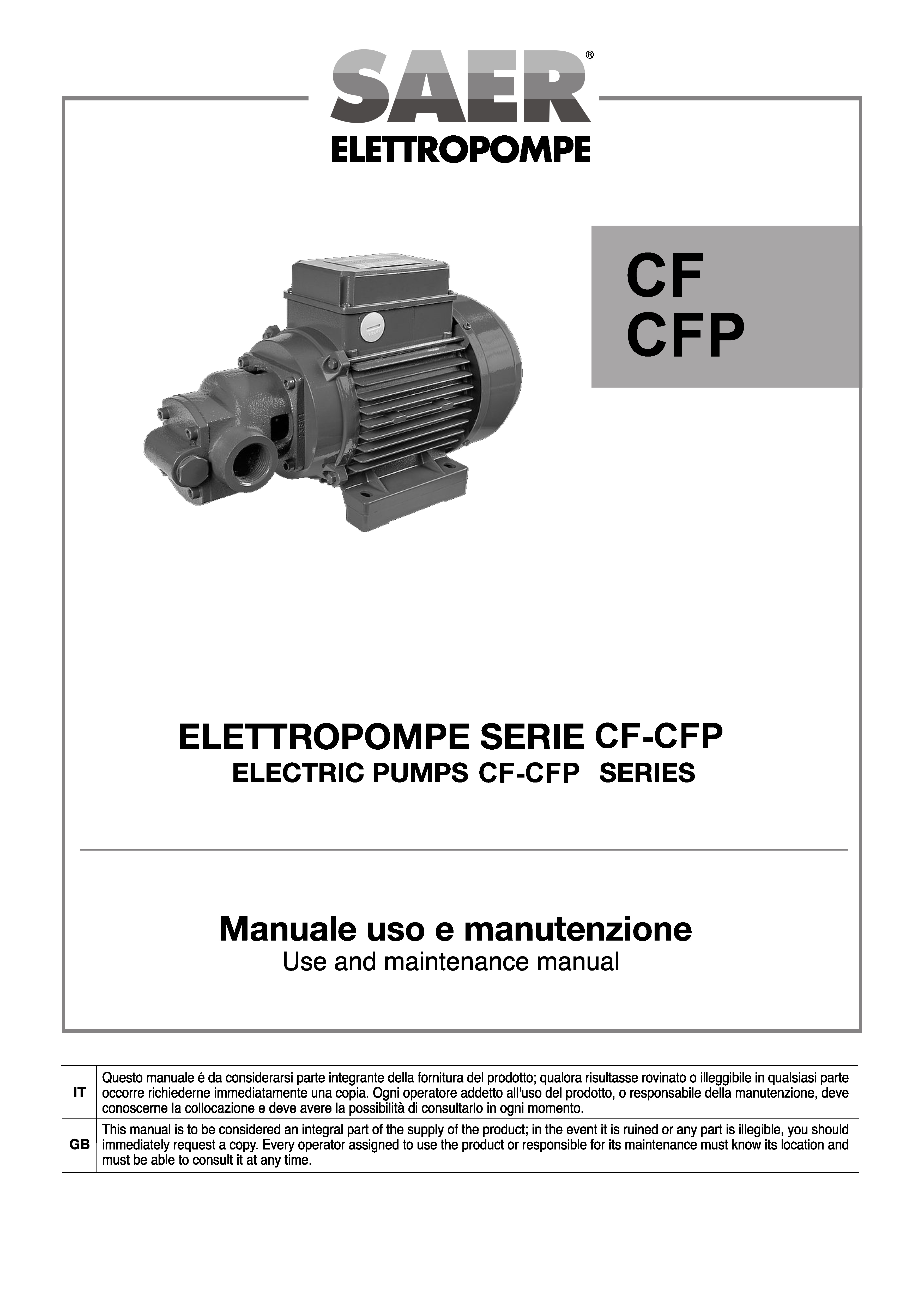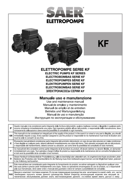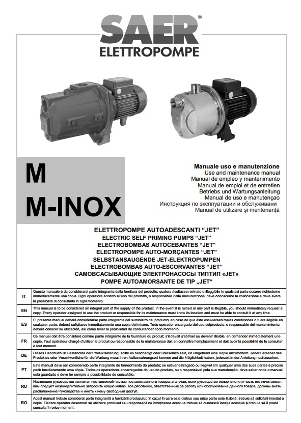 在本栏目中,您可以查阅 SAER Elettropompe 为您提供的使用说明。