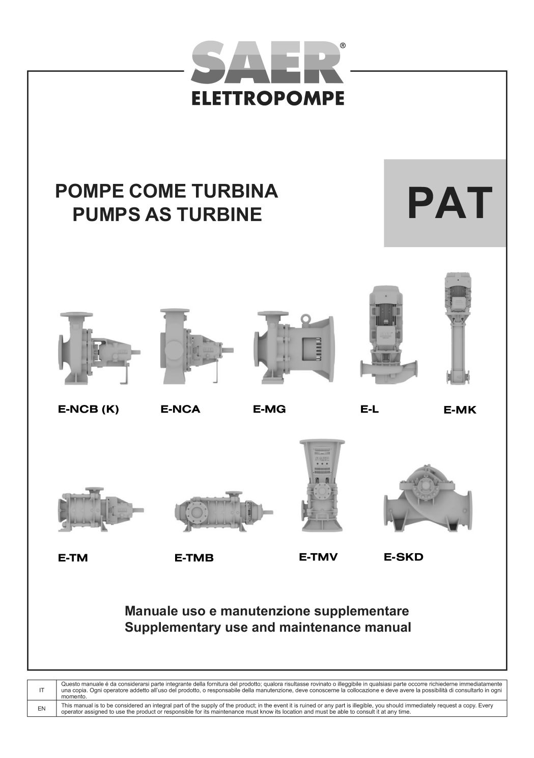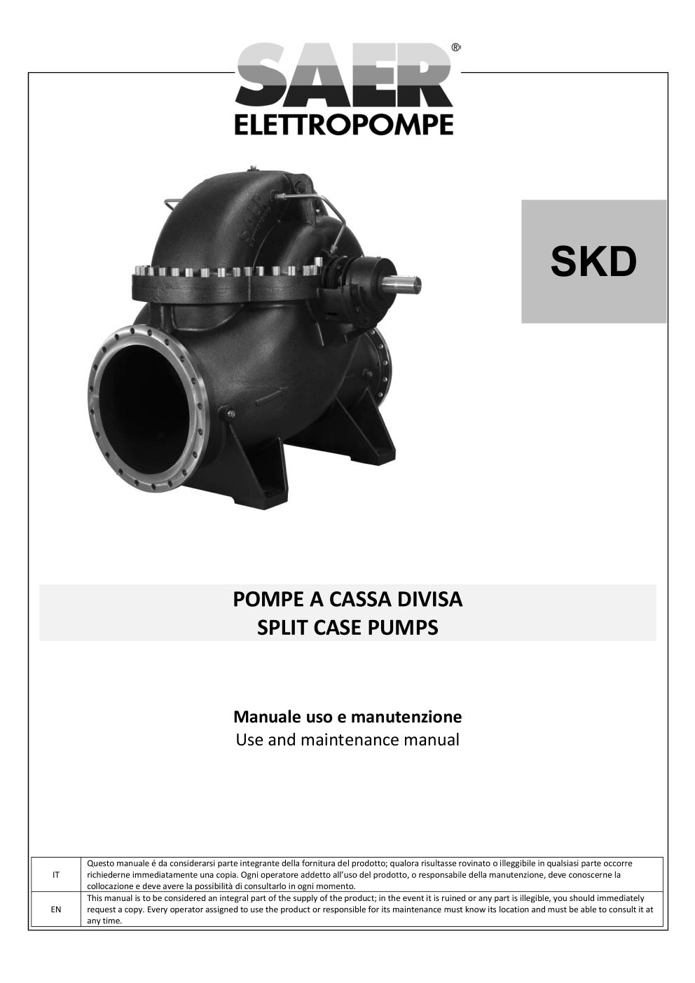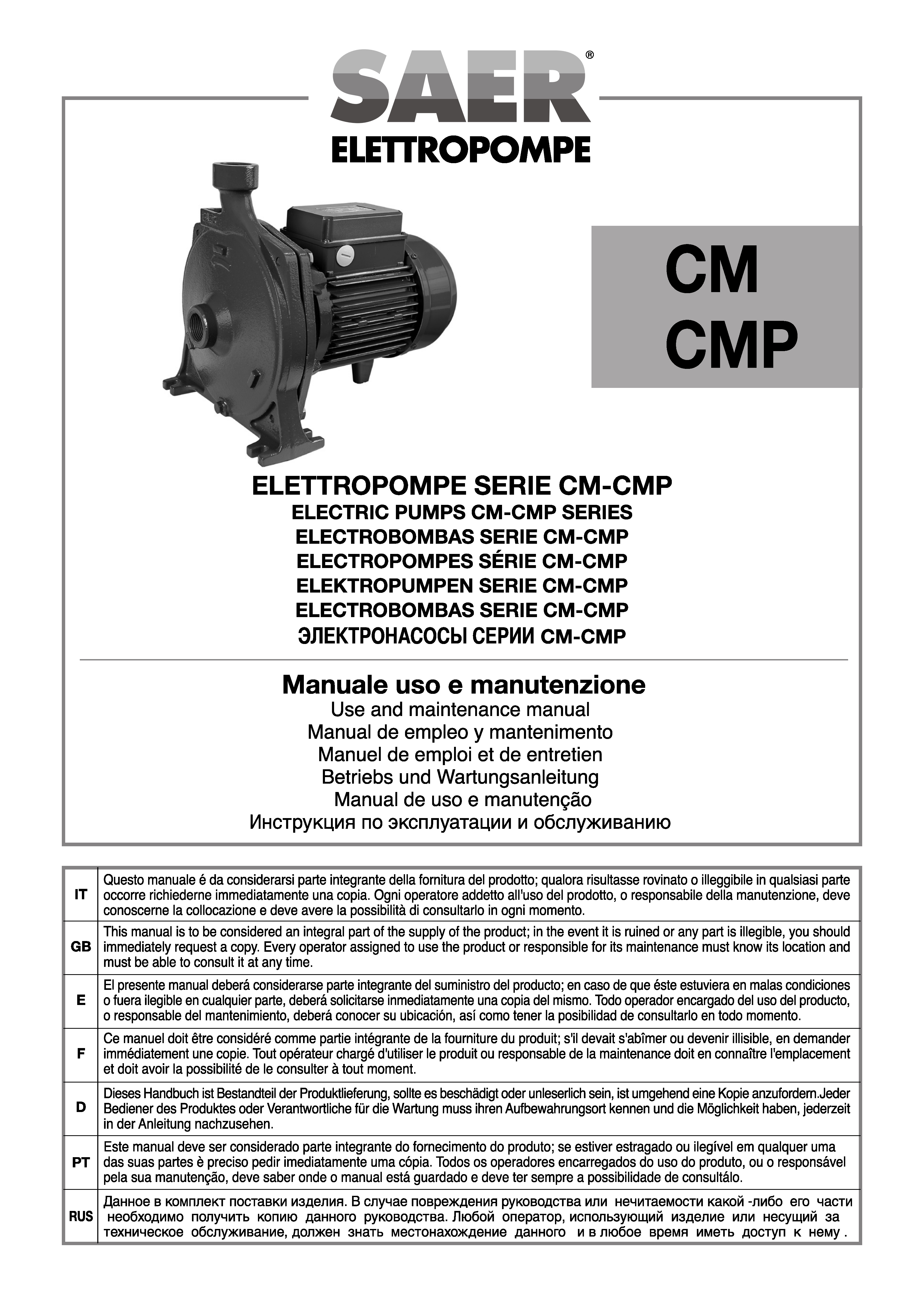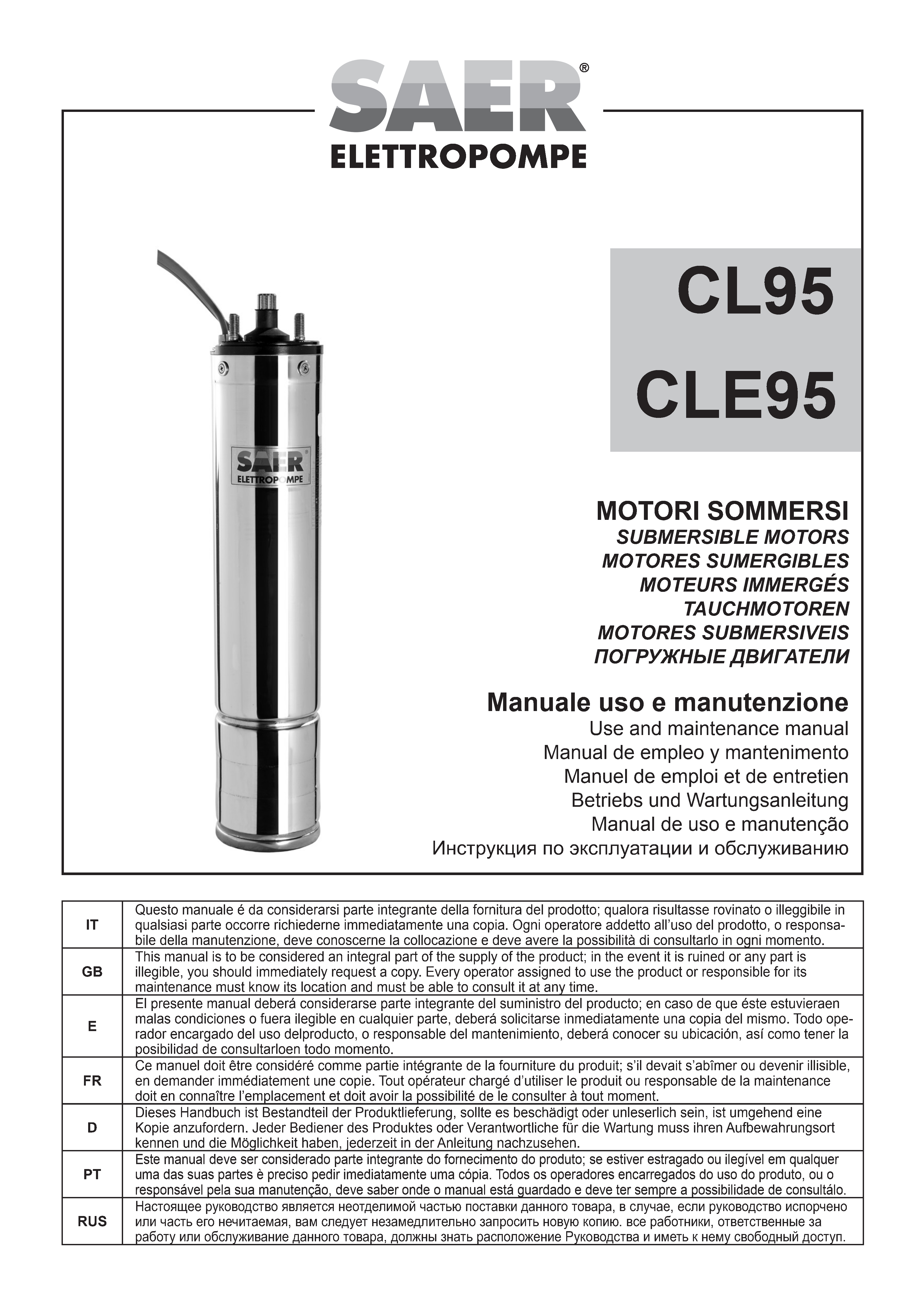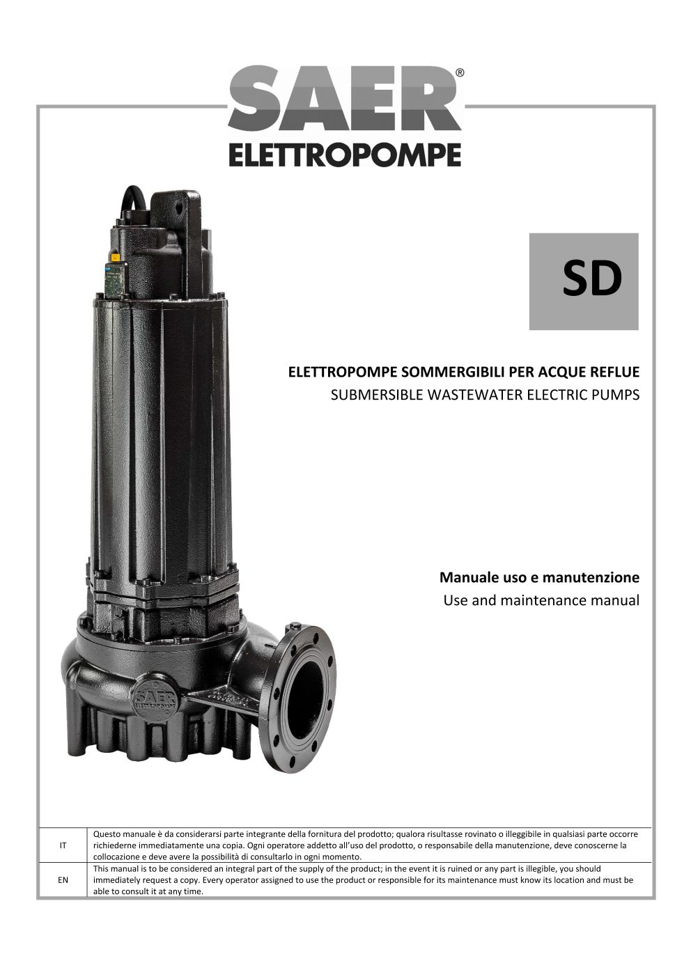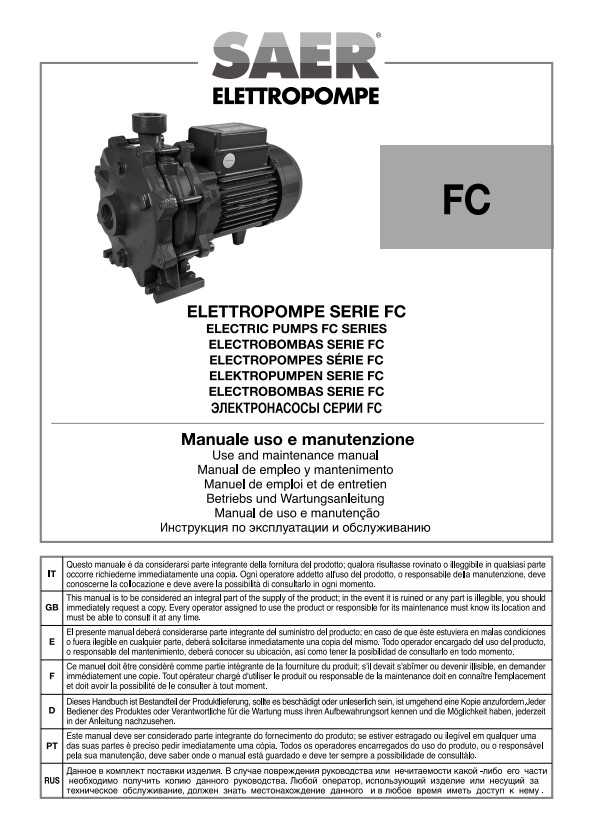 在本栏目中,您可以查阅 SAER Elettropompe 为您提供的用户与维护手册。