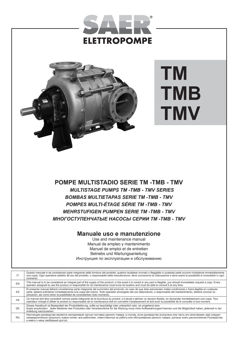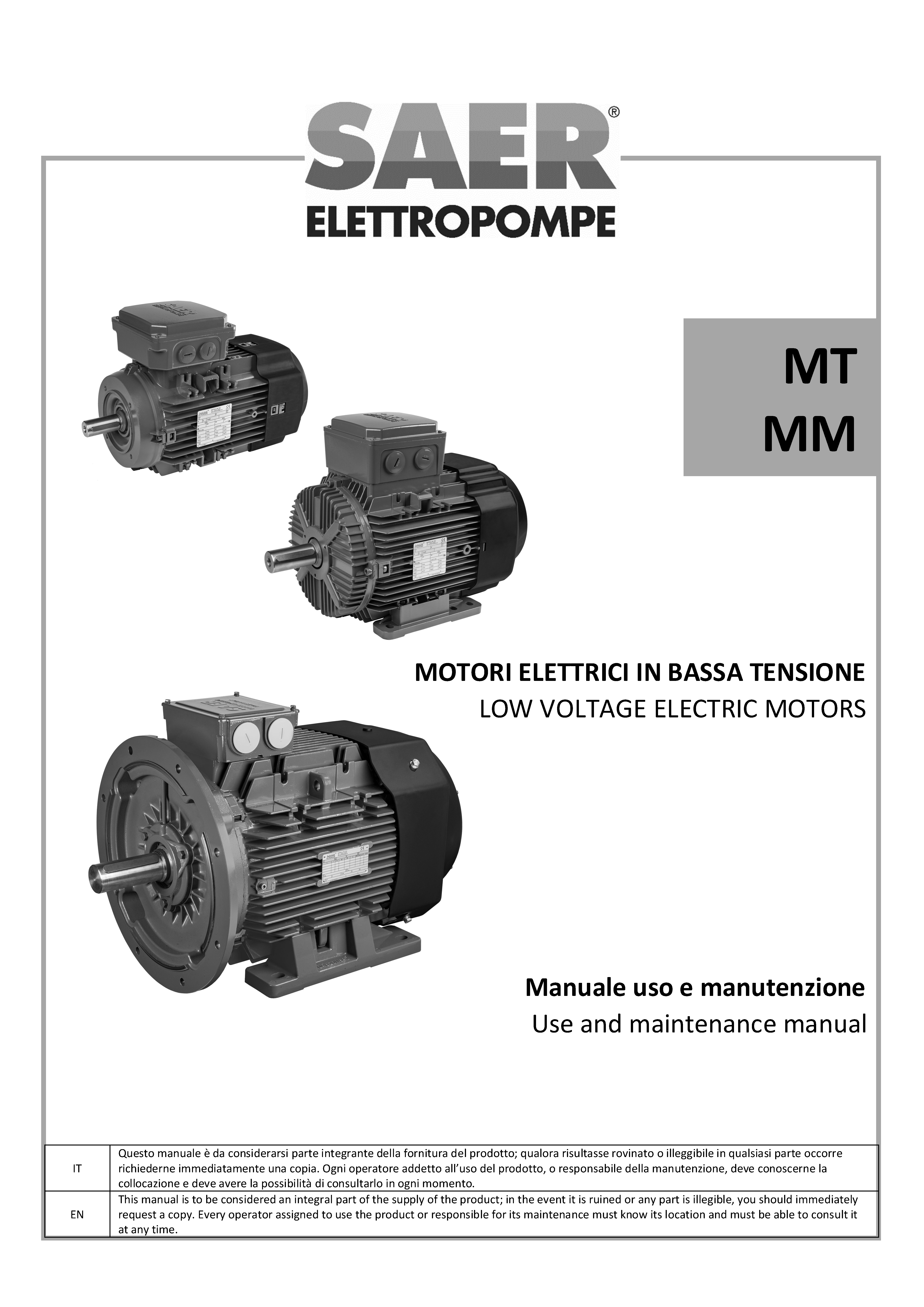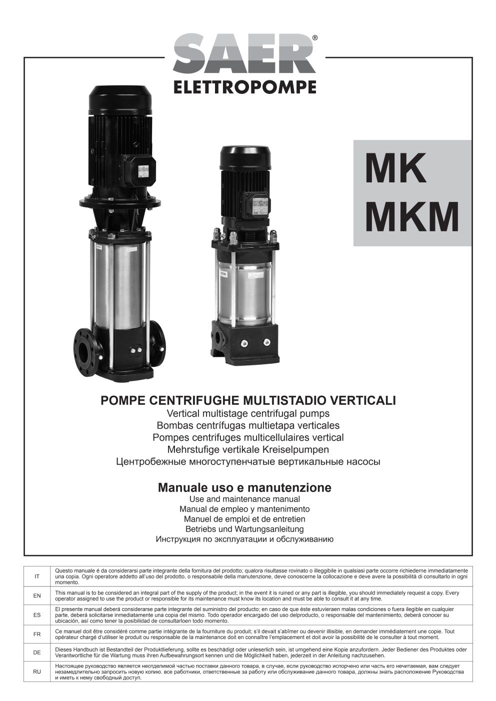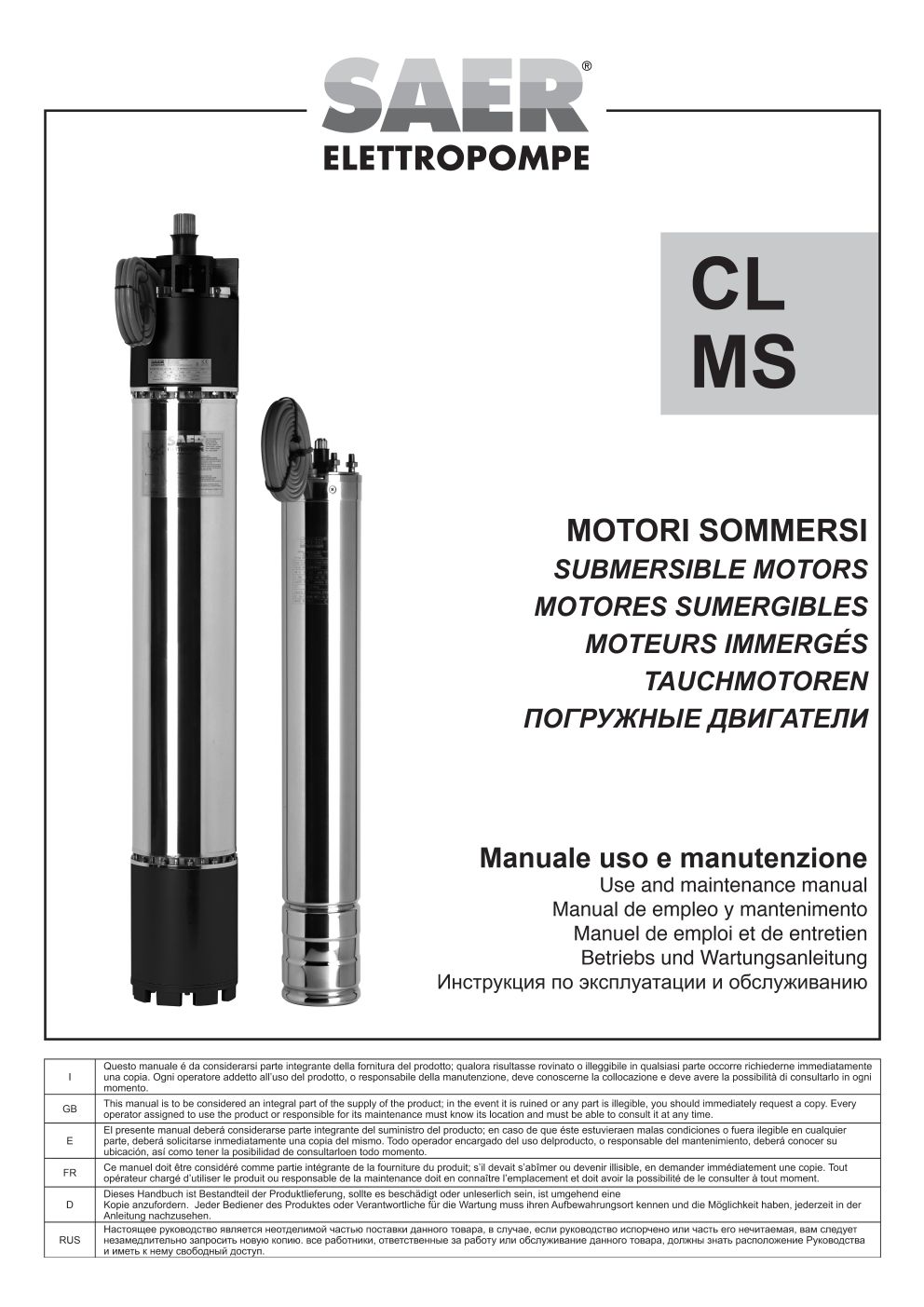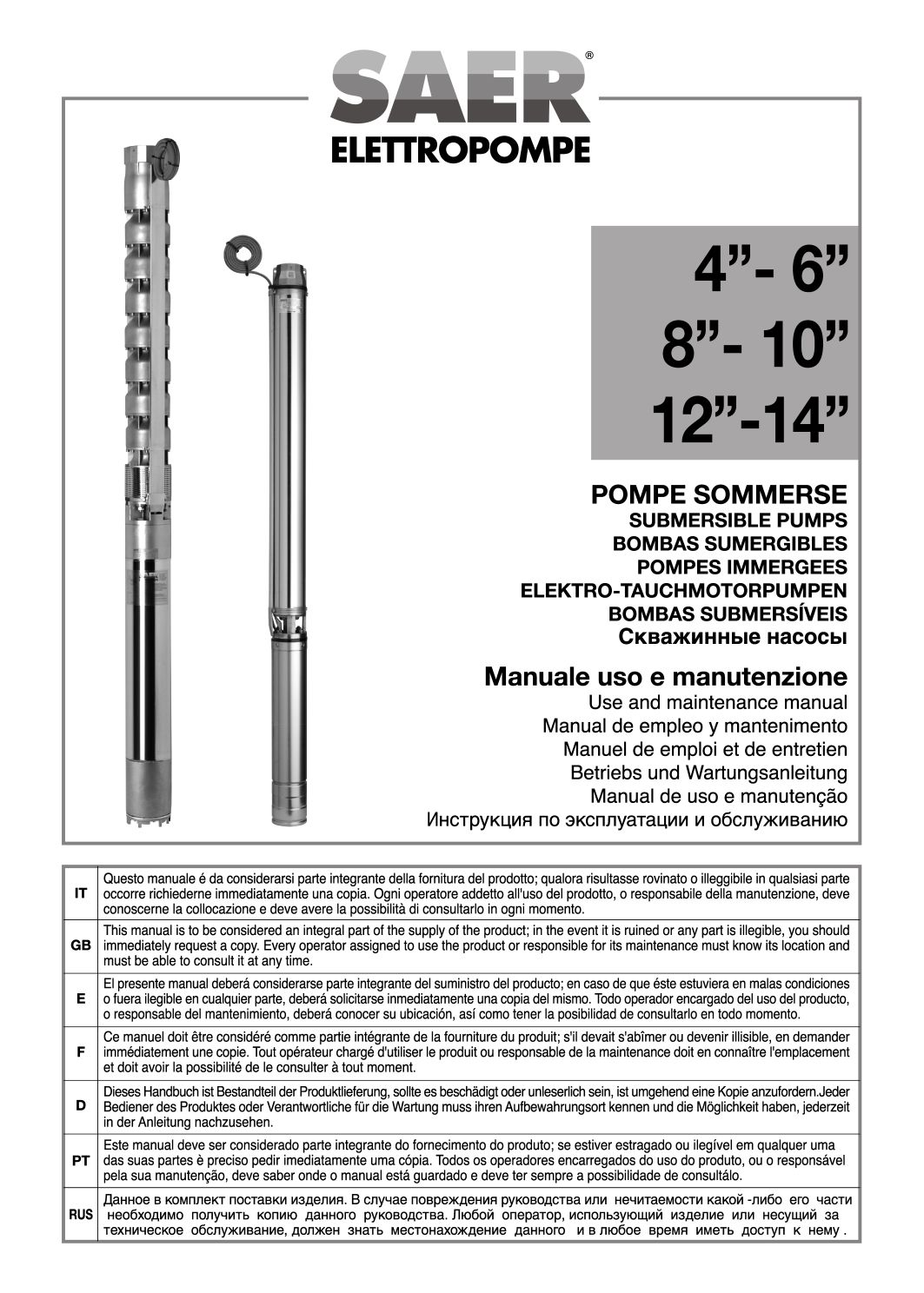 在本栏目中,您可以查阅 SAER Elettropompe 为您提供的用户与维护手册。